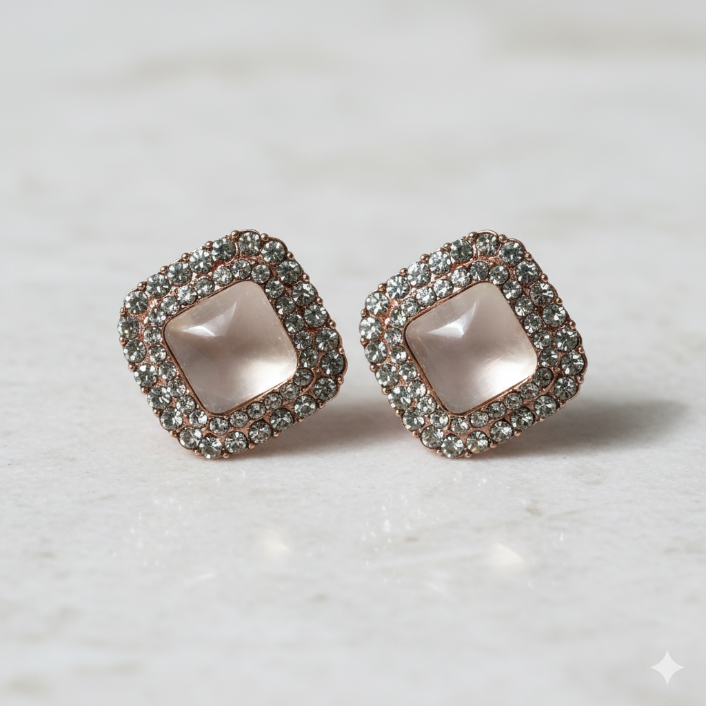American Diamond Pink Square Stud Earrings for Women & Girls – Elegant Imitation Jewellery