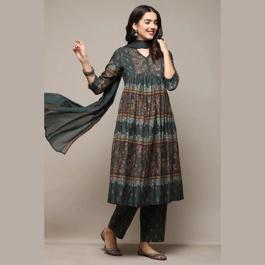 Invest in quality and style that lasts. Our Dark Green Voile Anarkali Kurta Pant Suit Set offers unbeatable value, ensuring that you look and feel your best without breaking the bank.