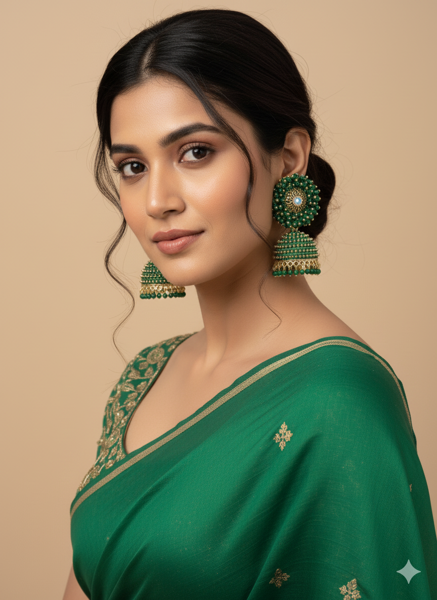 Green Jhumka Earrings for Women & Girls – Traditional Imitation Jewellery