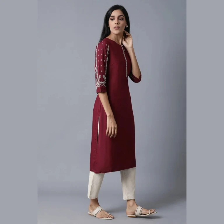 Maroon Straight Kurta Set with Cream Pants | Women’s Ethnic Wear