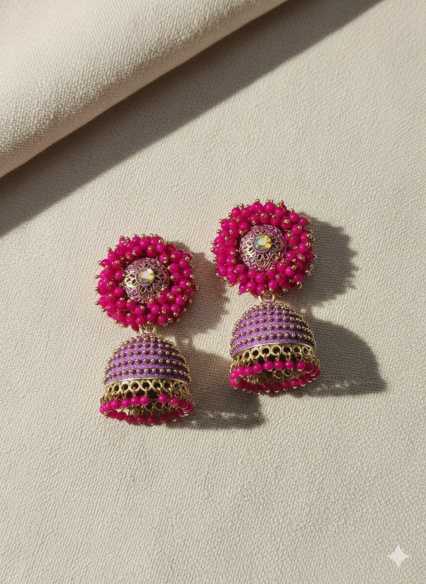 Pink Jhumka Earrings for Women & Girls – Traditional Imitation Jewellery