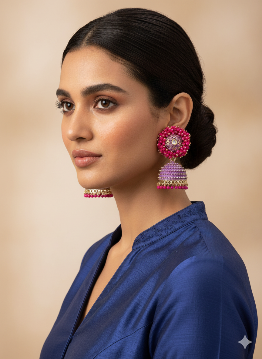 They are lightweight, durable, and skin-friendly, ensuring you look stylish while staying comfortable. Moreover, the jhumka design enhances your ethnic look and pairs beautifully with sarees, lehengas, kurtis, and Indo-western styles.