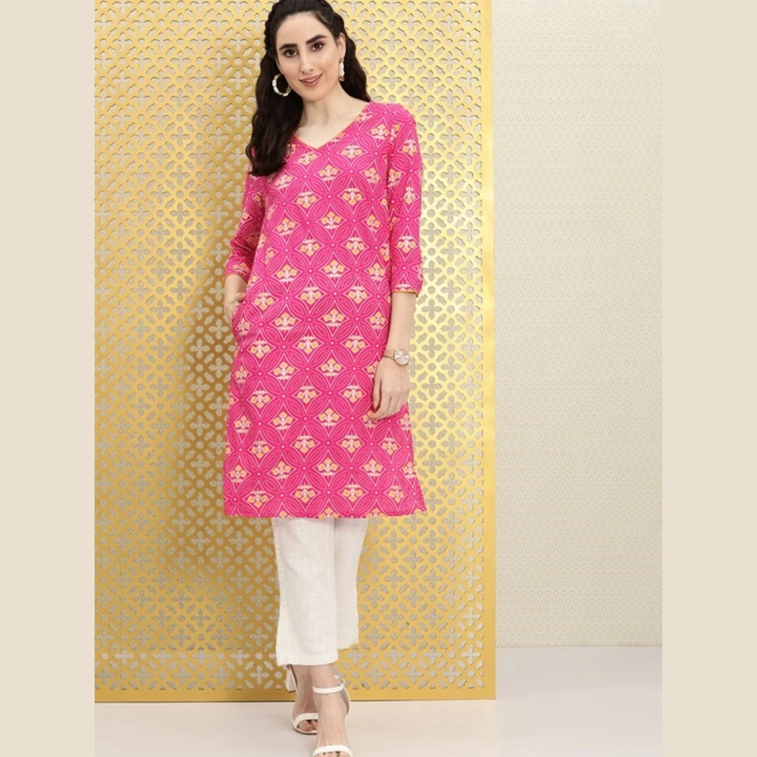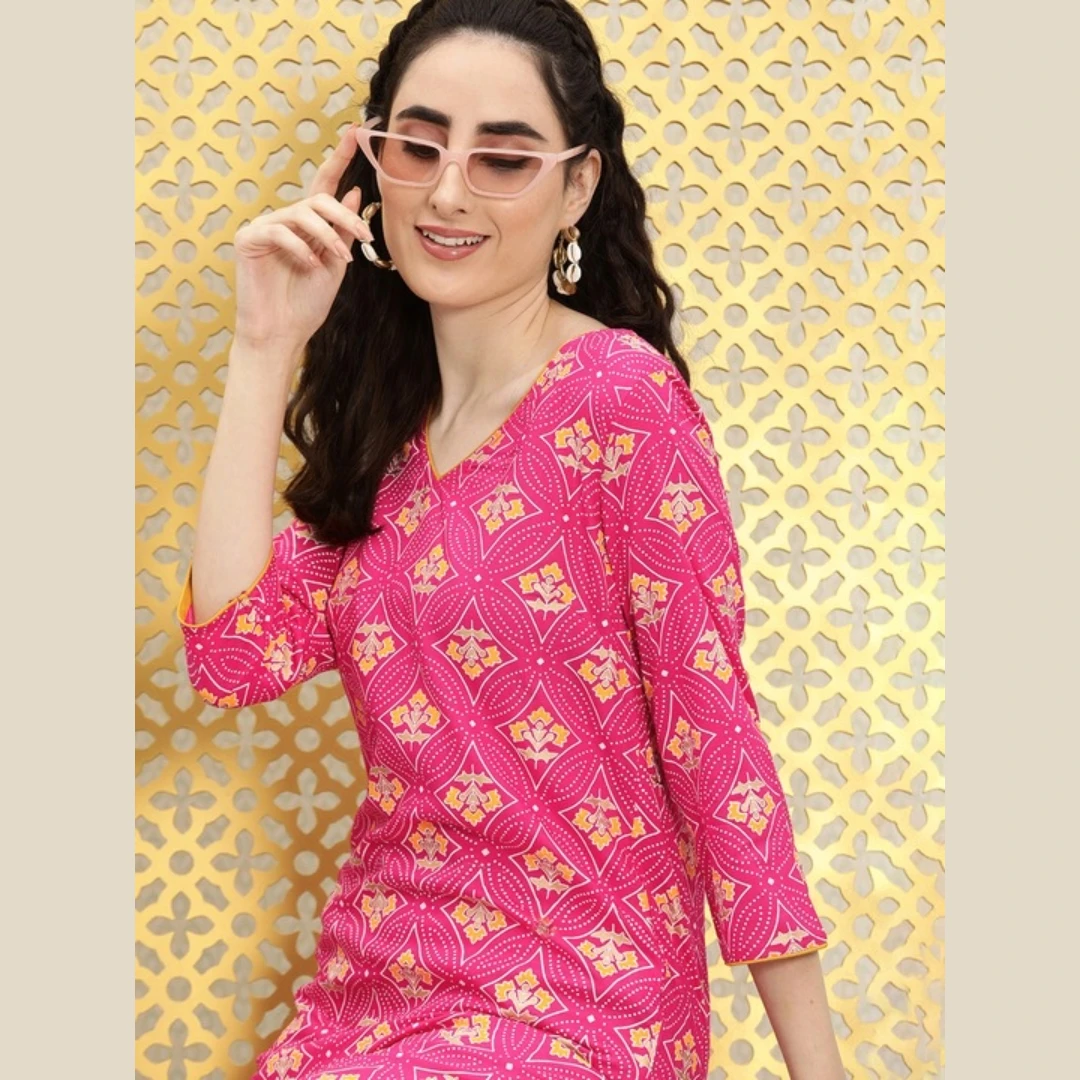 Pink Printed Kurta Set with White Pants | Women’s Ethnic Wear