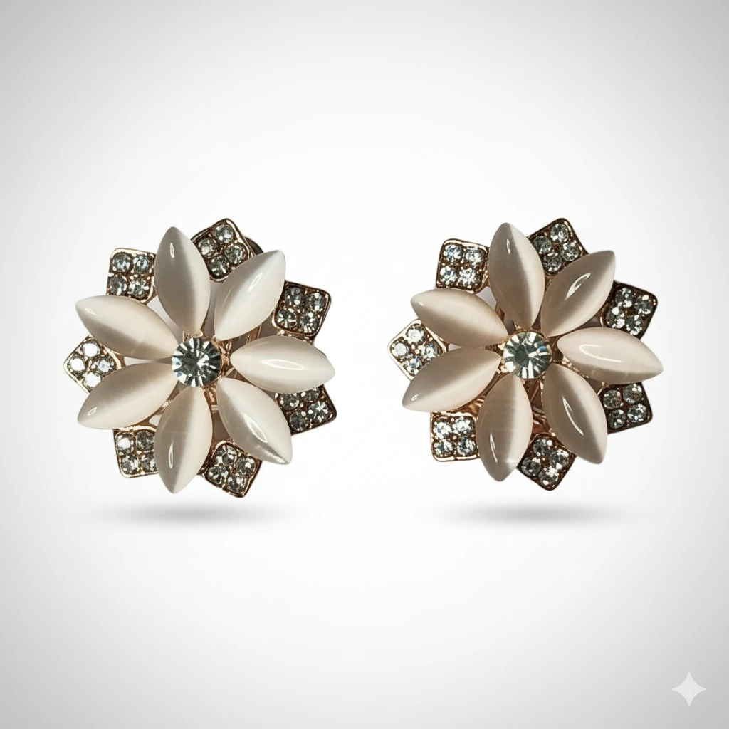 Bring timeless elegance to your jewellery collection with these Rose Gold Plated Flower Earrings. Designed for women and girls, these imitation jewellery earrings feature a delicate floral design enhanced with a radiant rose gold plating. Their lightweight build ensures comfort, while their stylish finish makes them perfect for parties, weddings, or everyday wear.