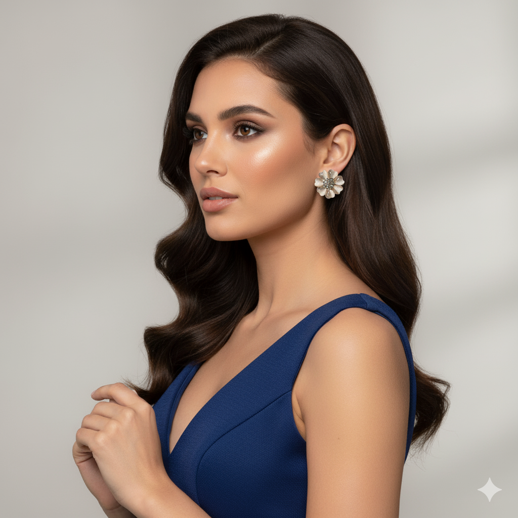 The floral design symbolizes beauty and freshness, making these earrings suitable for all age groups. Moreover, their rose gold tone ensures they match seamlessly with both Western and traditional outfits. Whether you’re attending a wedding, party, or office meeting, these studs will enhance your natural grace.