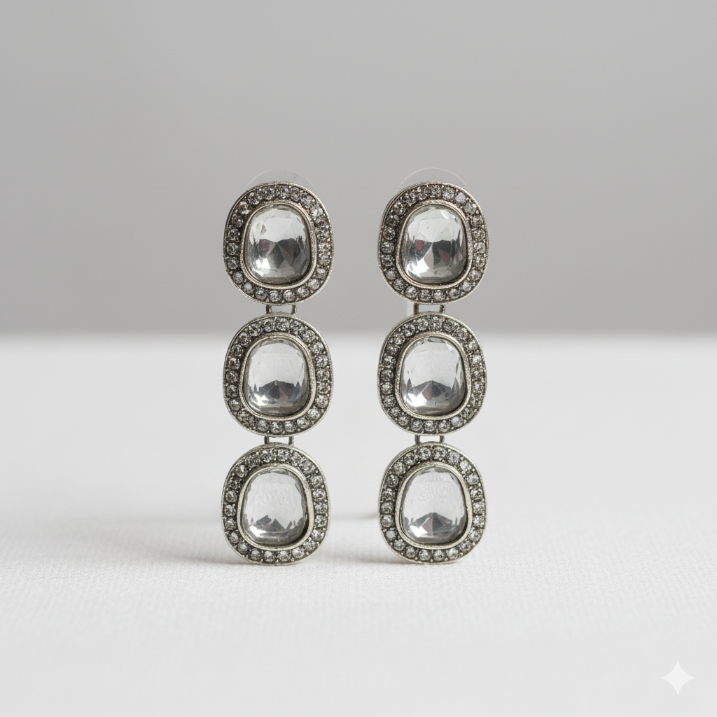 Elevate your style with these Silver Plated White Kundan & CZ Studded Earrings for Women, a perfect combination of elegance and sparkle. These earrings feature intricate kundan and cubic zirconia (CZ) work on a silver-plated base, making them ideal for parties, weddings, festive occasions, and casual outings.
