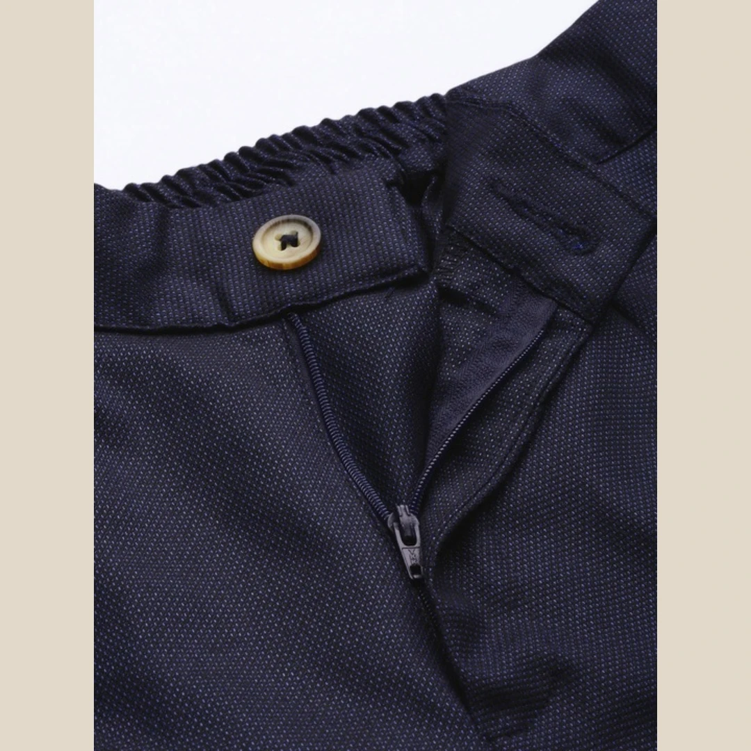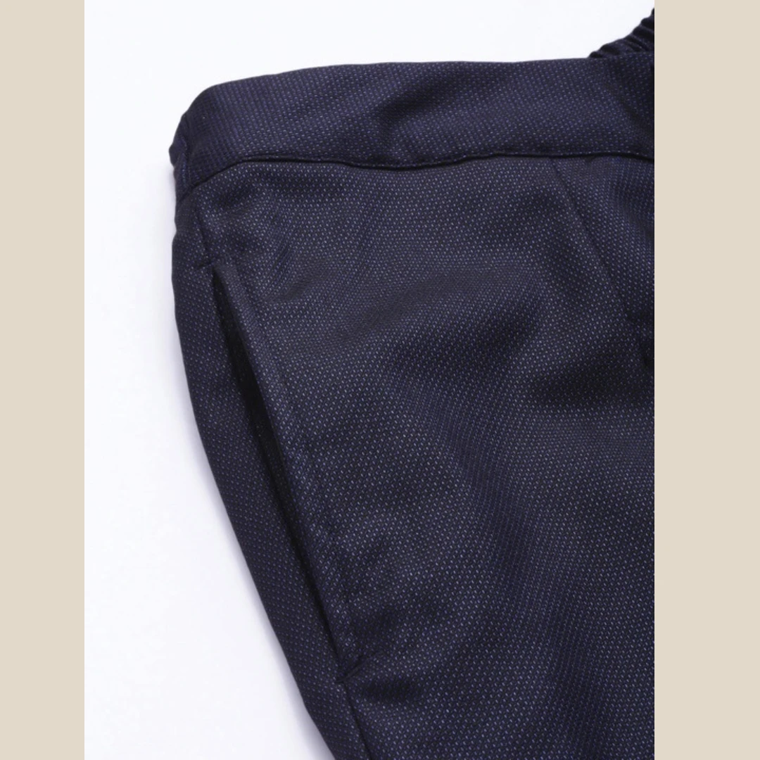 - Superior Quality Fabric: Made from premium-quality materials, these navy blue textured trousers offer durability and breathability, ensuring comfort throughout the day. The textured fabric adds depth and dimension to your ensemble, making it ideal for both professional settings and casual outings.