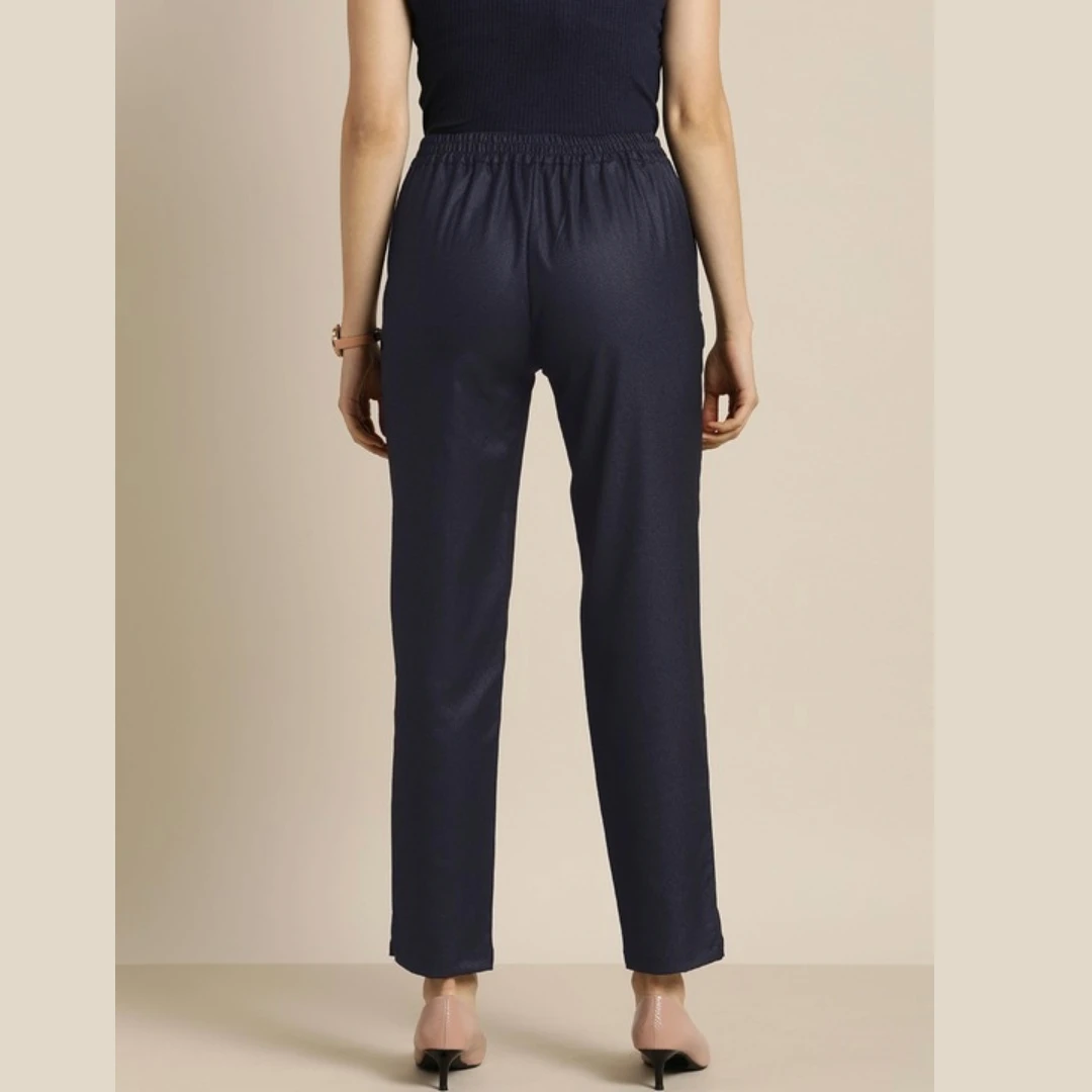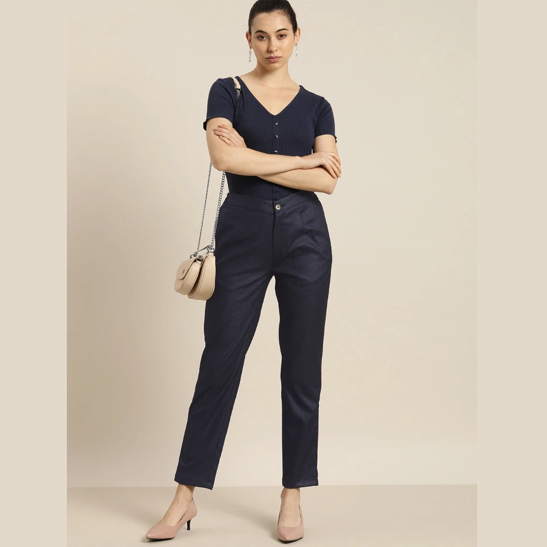 Elegant Women Navy Blue Textured Trousers: Style & Comfort Combined
